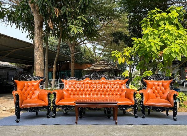 เช่าชุดโซฟาหลุยส์ เบาะน้ำตาลส้ม
