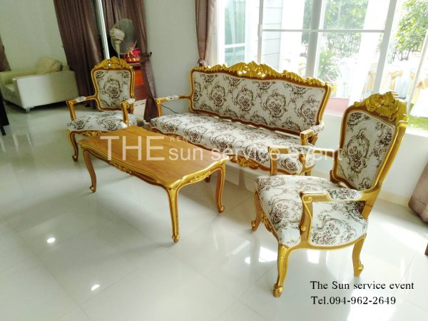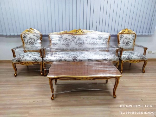 ให้เช่าชุดโซฟาหลุยส์ รองรับแขก vip รุ่นขอบไม้สักทอง